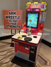 This arcade favorite simulates arm wrestling matches against one of nine opponents on the video display. Each one has their own skill/ strength level, as the the robotic arm tries to force the player into submission. Great for creating friendly competition among event guests….who will be the next ARM CHAMP????